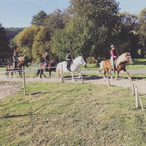 Für fortgeschrittenen Reiter bieten wir in den Reitstunden spezielle Themen, wie z.B. Tölt - oder Rennpassreiten, Springstunden auf dem Platz oder Ausritte mit besonderen Highlights an. Natürlich bleibt die klassische Dressurausbildung im Sinne der Skala der Ausbildung ein wesentlicher Bestandteil des Unterrichtes. Der Spaß kommt natürlich auch nicht zu kurz, sodass regelmäßig unterschiedliche Reitweisen wie Halsringreiten, Trailreiten oder Signalreiten in den Unterricht mit einfließen.