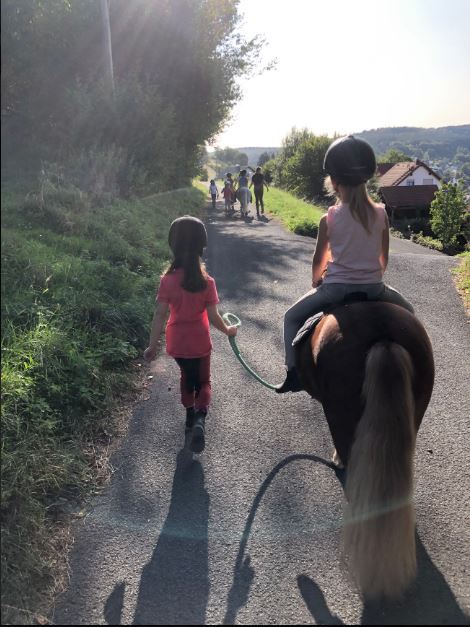 Bitte beachten: Reitpädagogik ist kein klassischer Reitunterricht. Bitte erklären Sie Ihrem Kind, dass sich mehrere Kinder ein Pferd "teilen" während der Stunde. Die Kinder lernen hier nicht das Reiten mit den Zügeln. Es geht in erster Linie darum spielerisch einen sicheren Umgang mit dem Pferd zu bekommen. Bevor kein unabhängiger & stabiler Sitz vorhanden ist bekommt das Kind bei uns aus Sicherheitsgründen keine Zügel in die Hand.